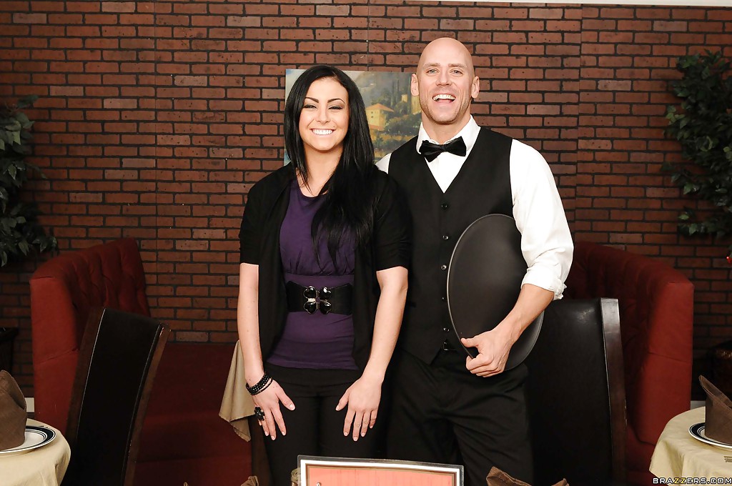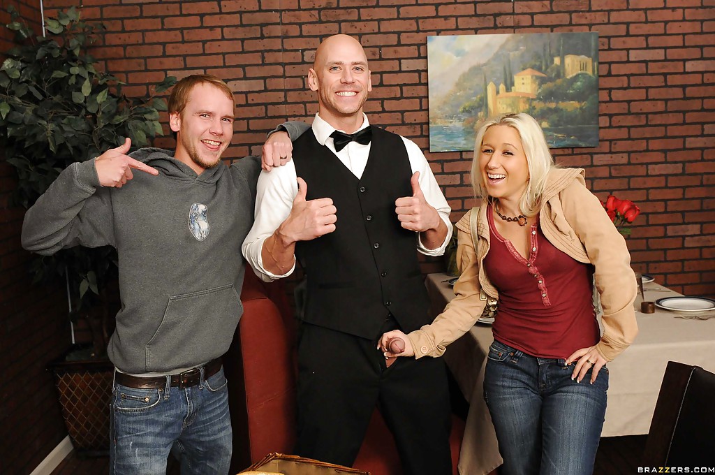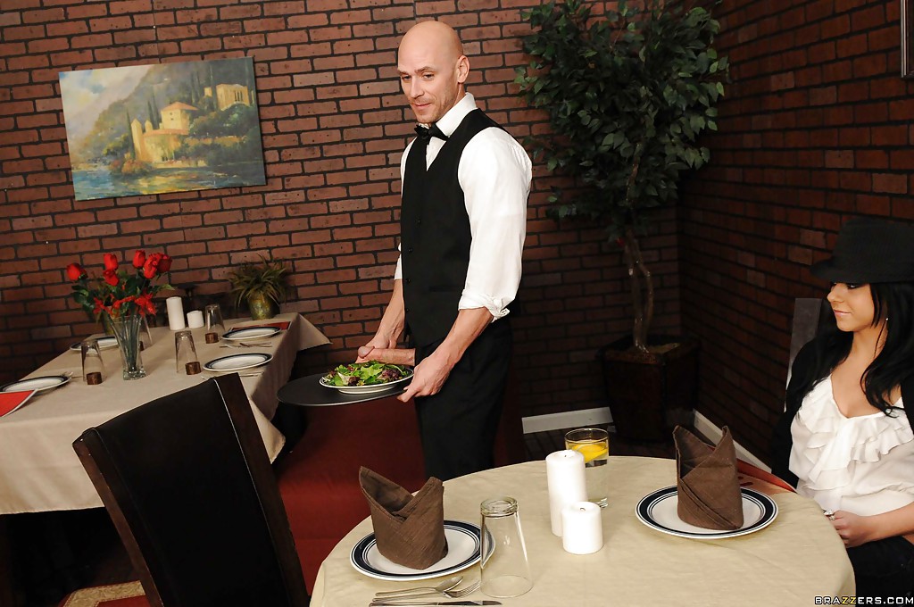 Две похотливые мамочки в джинсах соблазняют своего официанта и дразнят его член