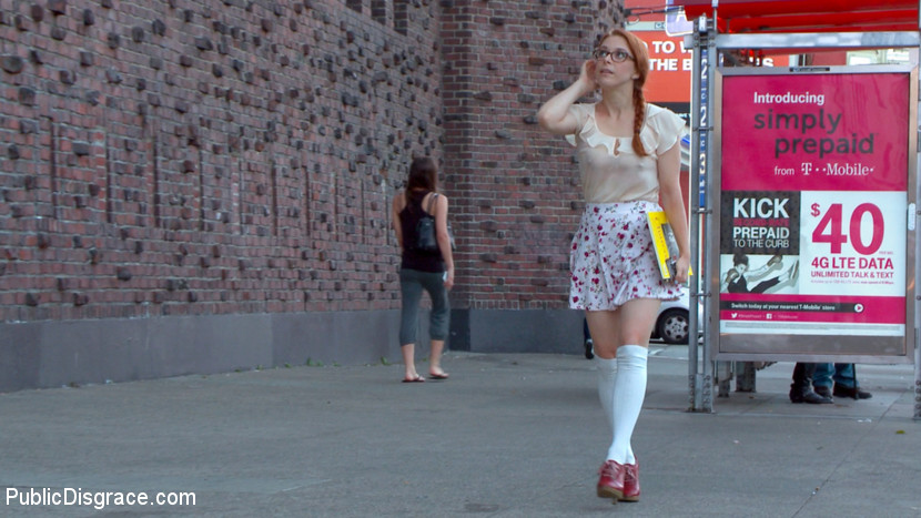 Грудастая рыжеволосая Пенни Пакс подвешена на веревках во время секса на публике