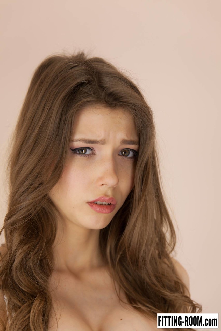 Красивая молоденькая Мила Азул трахает пальчиком свою безволосую киску на стуле
