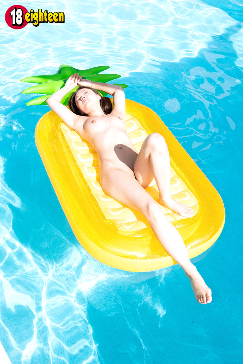 Крошечная азиатка Лулу Чу снимает свое бикини, наслаждаясь отдыхом у бассейна
