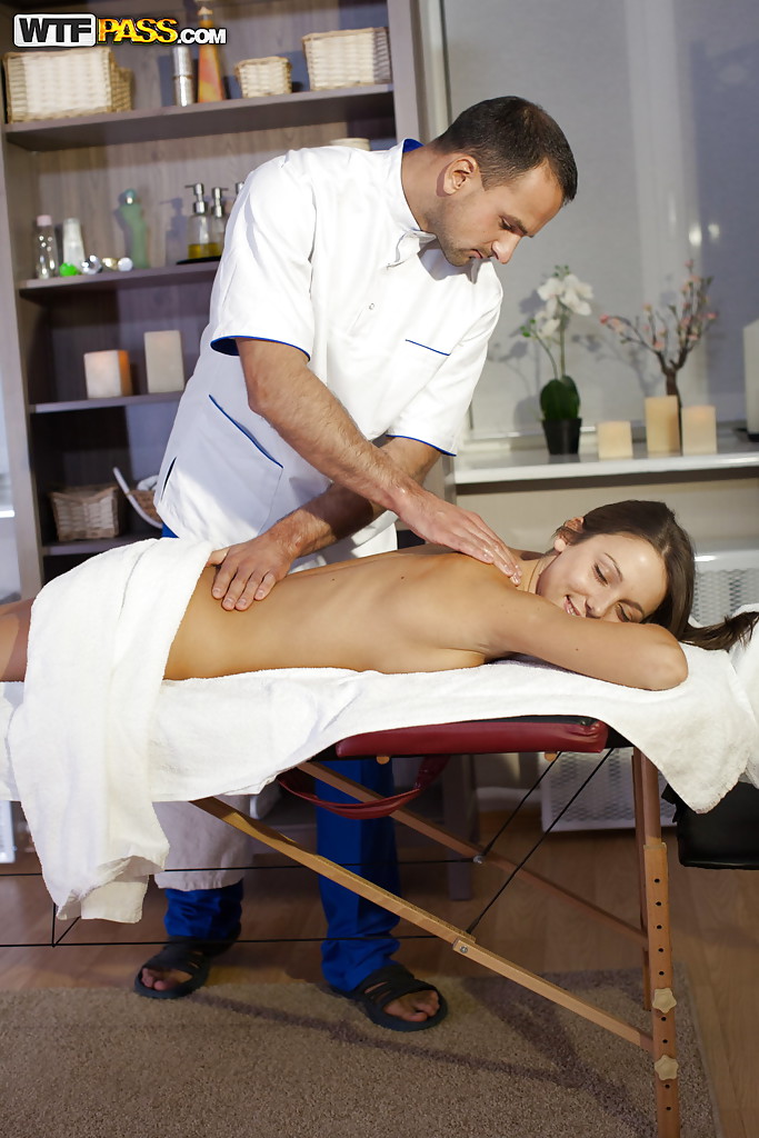 Крошечная европейская девушка Фокси Ди получает массаж и лижет киску