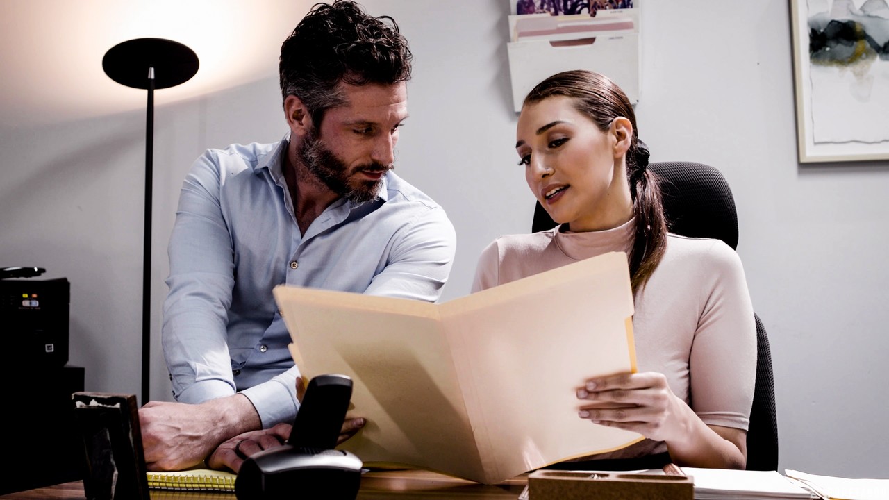 Молодая секретарша Белла Ролланд спасает свою работу, занимаясь сексом со своим боссом