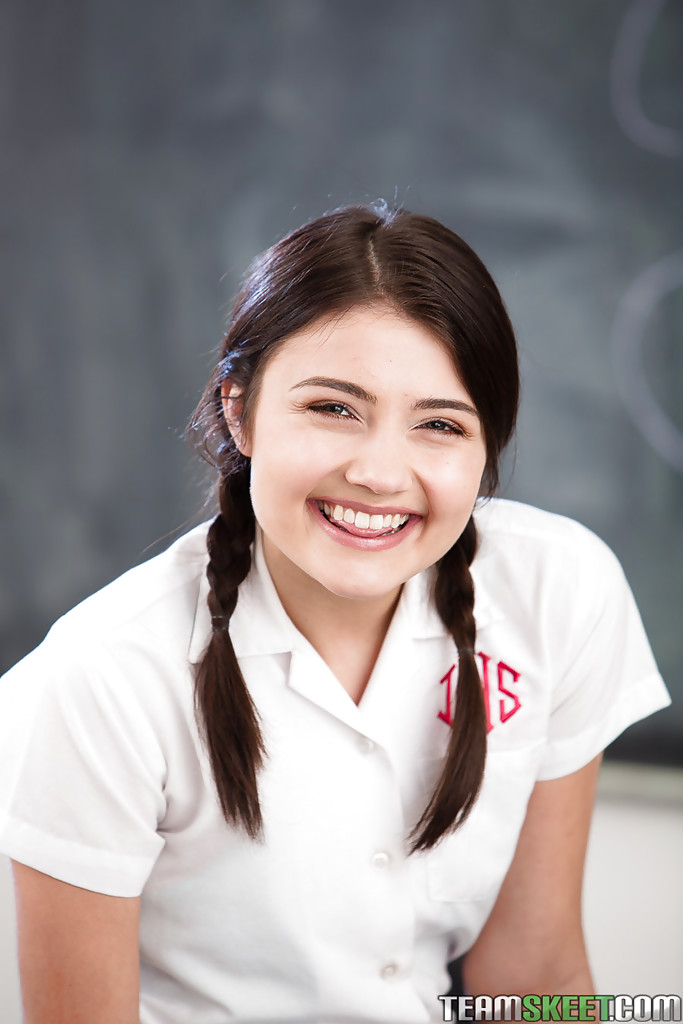 Молодая соло-девушка Адриа Рей обнажает крошечные сиськи и школьную попку с косичками