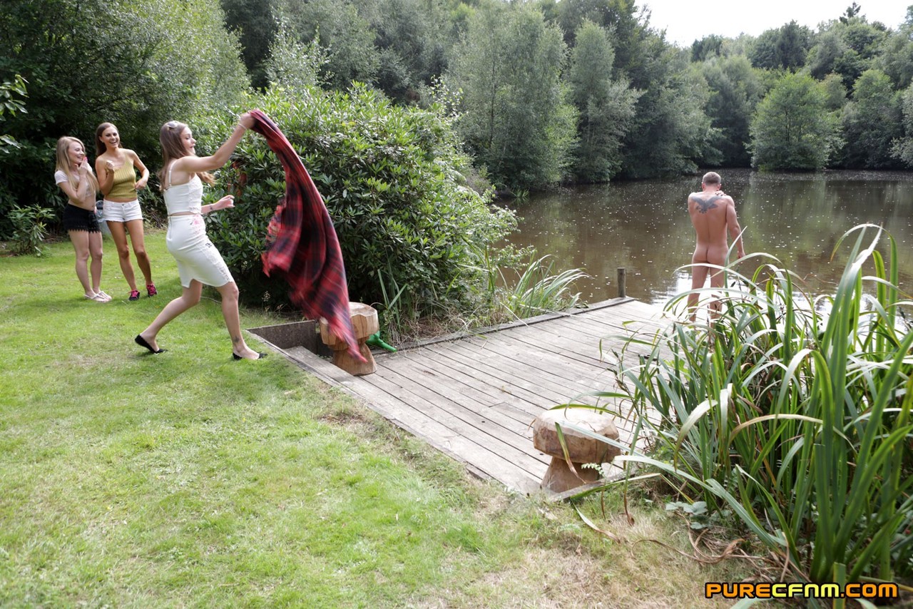 Счастливчик получает тройной минет на публике от ненасытных красоток-подростков