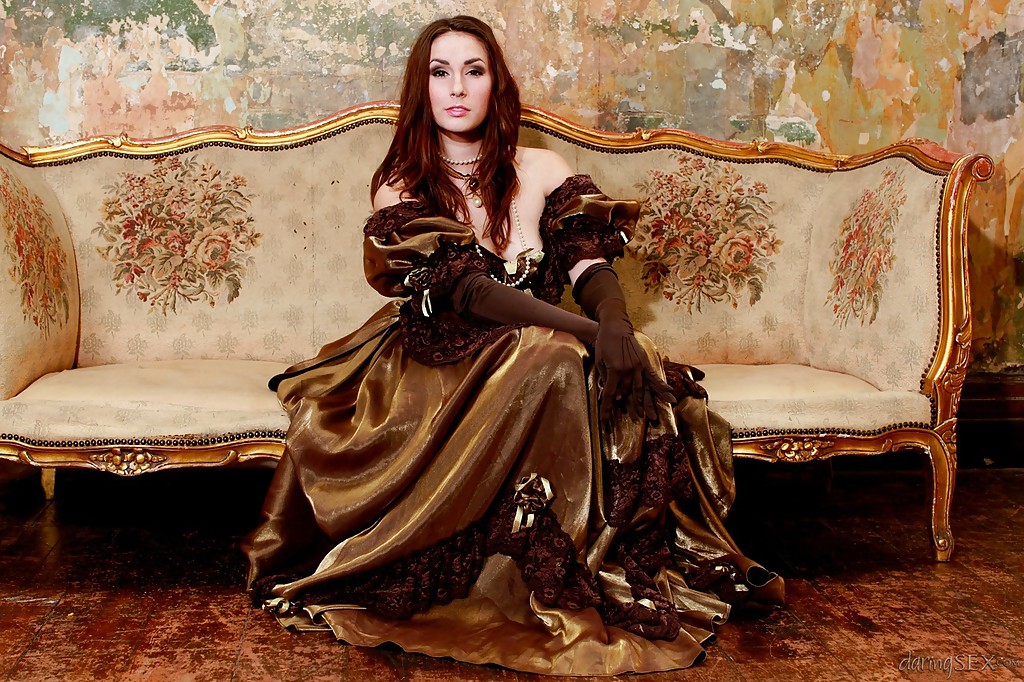 Сексуальная красотка в чулках Пейдж Тернах обнажает свои красивые сиськи и розовую киску