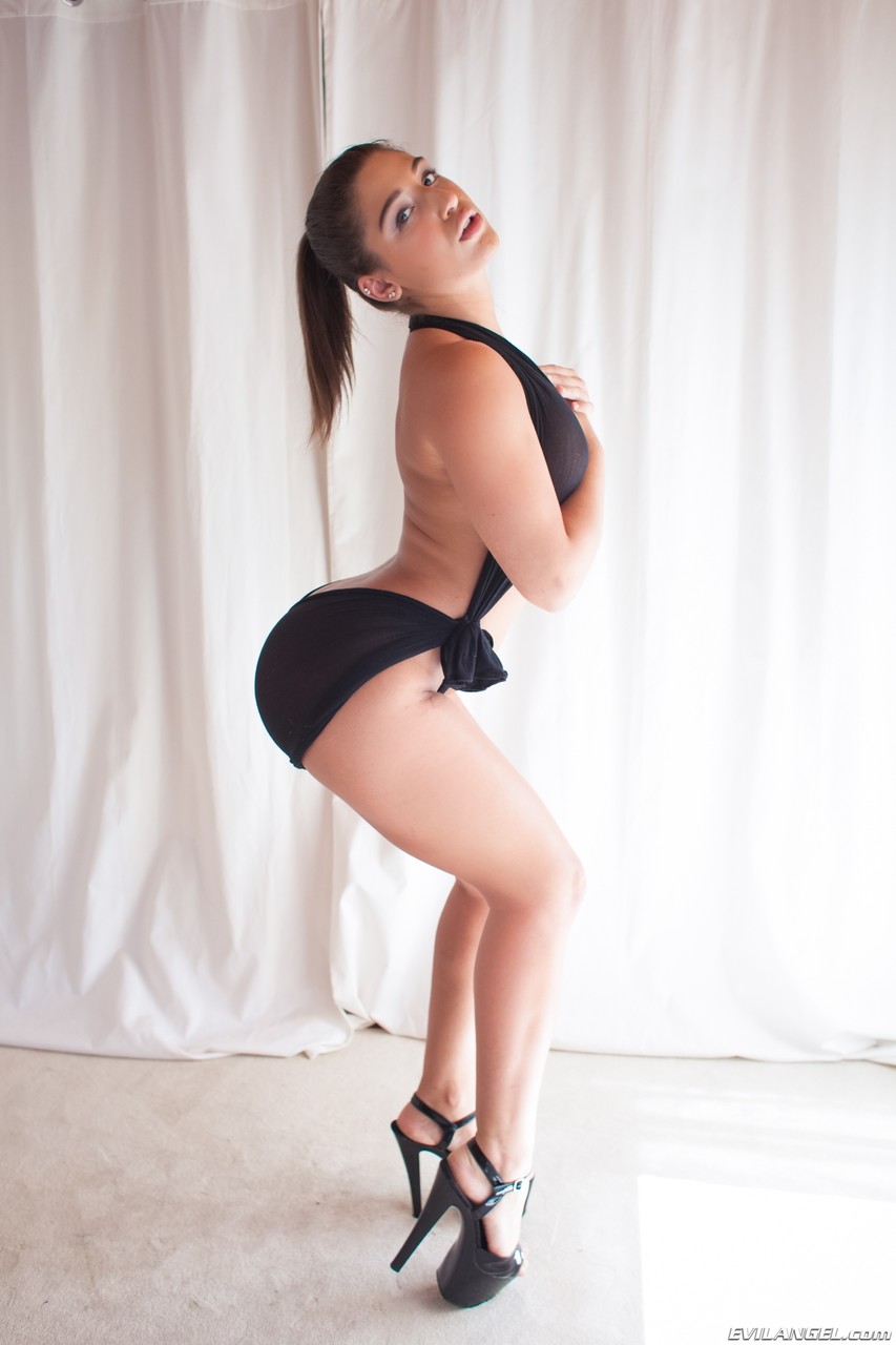 Сексуальная шлюха Абелла Дэнджер раздвигает ножки, показывая шикарную задницу и бритую пизду