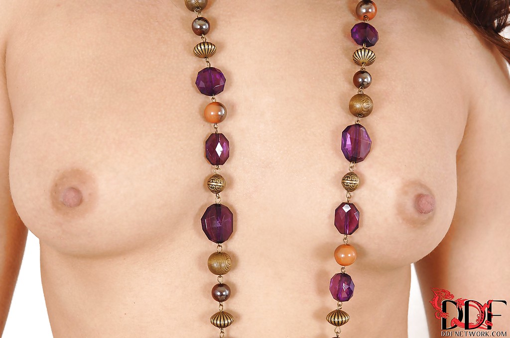 Соблазнительная брюнетка избавляется от своей одежды и теребит пальцами свою рану