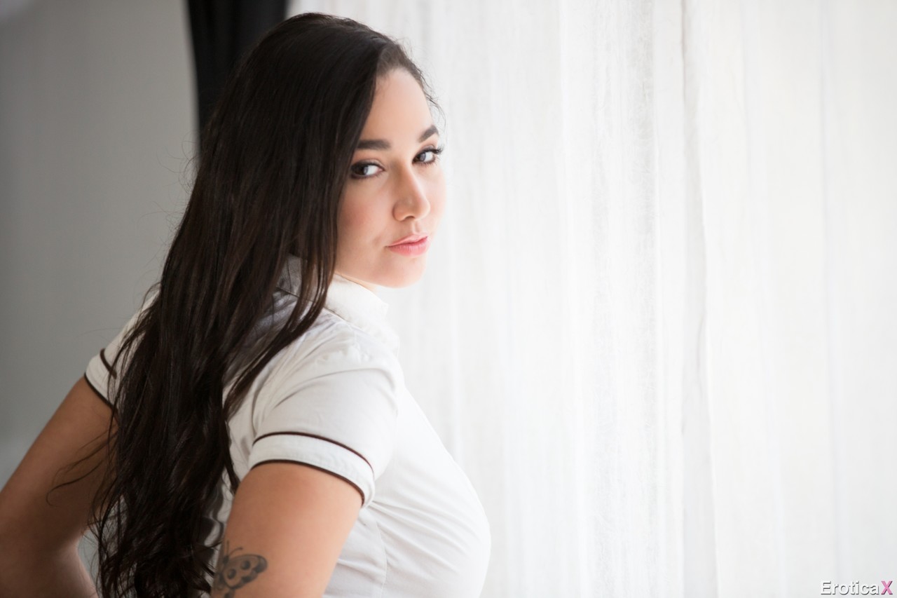 Соблазнительная девушка-одиночка Карли Грей обнажает свои красивые дыни, когда раздевается