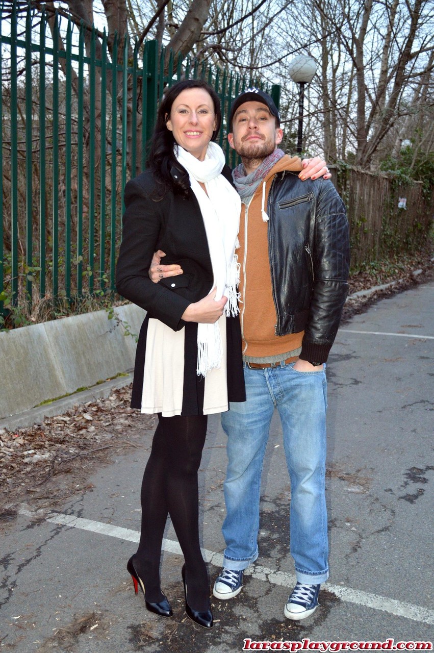Высокую женщину трахает большой пенис в черных нейлоновых чулках и на каблуках с красной подошвой